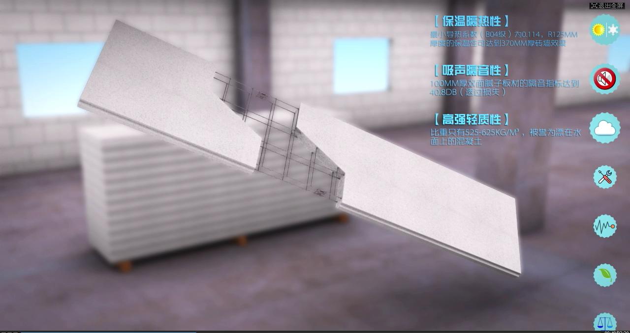 成了經過不懈努力,矢量公司為海靚新型建材有限公司制作ALC板材蒸壓加氣輕質隔墻板材宣傳動畫終于完。動畫制作精良,流暢自然,對產品的表現恰到好處,很好地展現隔墻板的搭建過程,體現其使用情況及良好的性能,起到宣傳產品的作用。